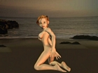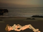 Golden girl poses naked on the beach.